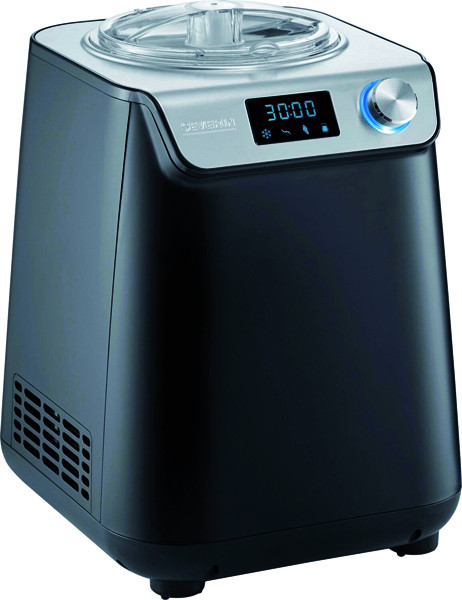 kompakte 2-in-1 Eismaschine mit Joghurtfunktion, Kompressorbetrieb, zur Zubereitung von Eis, Sorbet, Frozen Joghurt und Joghurt; Eis in weniger als 30 Min., herausnehmbarer beschichteter Eisbehälter, Deckelöffnung zum Zufügen weiterer Zutaten, Temperaturanzeige, digitaler Timer, minutengenau einstellbar, automatische keep-cooling-Funktion (60 Min) zur Weiterkühlung nach Ende der Zubereitungszeit, Messbecher, Eisportionierer