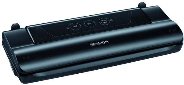 vollautomatisches Vakuumieren und Verschließen von Vakuumierbeuteln und -rollen, Stop-Funktion für sensible oder feuchte Lebensmittel, geeignet für Folien und Beutel bis 28 cm Breite, Unterdruck bis -0,5 bar, intuitive 3-Tasten-Bedienung, Kontrollleuchten für Absaug- und Schweißvorgang, inkl. 10 Vakuumierbeutel 28 x 35 cm