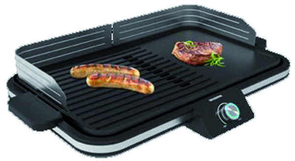 Plancha-Grill, glatte/gerippte Oberfläche, Fettauffangschale, Temperatur stufenlos regelbar, leichte Reinigung durch modularen Aufbau