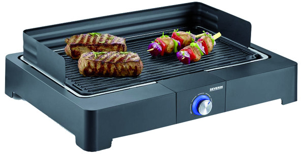 gerippte Grillplatte aus Aluminium-Druckguss, Wasser in der Grillschale für leichtere Reinigung, gegen Fettbrand und verminderte Rauchbildung, SafeTouch-Gehäuse, Windschutz, Grilltemperatur stufenlos regelbar mit Drehregler, LED-Ring zur Temperaturkontrolle rot/blau, leichte Reinigung durch modularen Aufbau