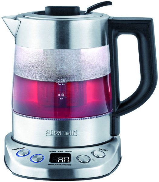 kabellos, 360°-Sockel, einstellbare Temperaturstufen: 40 °C - 100 °C in 5 °C-Schritten, feinfühliger integrierter Temperatursensor, „Easy Tea Select“ Funktion mit 5 voreingestellten Teeprogrammen, „Quick-Boil & Tea Funktion“ 100°C per Knopfdruck, einstellbare Ziehzeit 1 - 15 Min. mit Signalton, „Be-Silent“ Funktion: Signaltöne können auf Wunsch deaktiviert/aktiviert werden, Edelstahl-Basis mit beleuchteten Bedientasten und LED Display, automatische Warmhaltefunktion zur 30 minütigen Temperaturspeicherung, abnehmbarer Deckel und große Öffnung, Trockengeh-/Überhitzungsschutz, hochwertiges Gehäuse aus Edelstahl und temperaturwechselbeständigem Glas, inkl. feinmaschiger Teefilter aus Edelstahl mit Griff