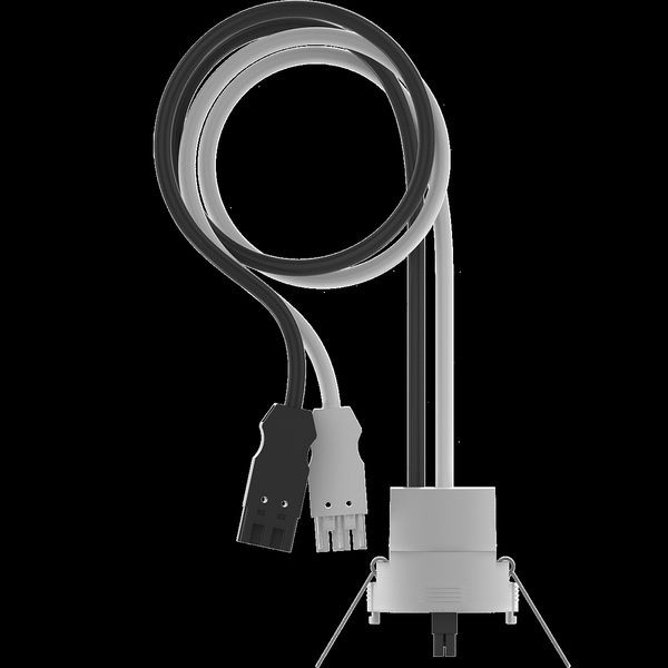 Deckeneinbau-Set für den Einbau in Hohldecken (Lochgröße Ø 68mm), Für 230V Sensor Serie DT, Mit vorkonfektionierten Anschlussleitungen für WAGO WINSTA®, Werkzeuglose Montage durch einfaches Aufrasten, Optional erhältlich ist ein alternatives Melder-Cover für eine deckenbündige Installation (Lochgröße Ø 85mm), Geräteart: Deckeneinbau-Set – Zubehör, Anschluss: WAGO, WINSTA® MIDI Kod. A, Abmessungen: Ø 68mm, H: 55mm, Kabellänge: 1,50m, Anwendungsbereich: Innenbereich, Gehäusefarbe: Opal, Gehäuse: UV-stabilisiertes Polycarbonat