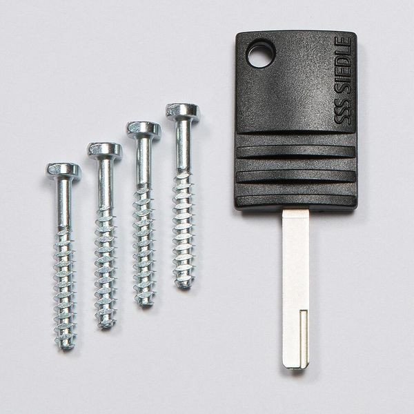 4 Schnellbefestigungsschrauben zur Befestigung des Montagerahmen im Unterputzgehäuse. Inklusive Vario 611 Schlüssel zur Entriegelung der Module.