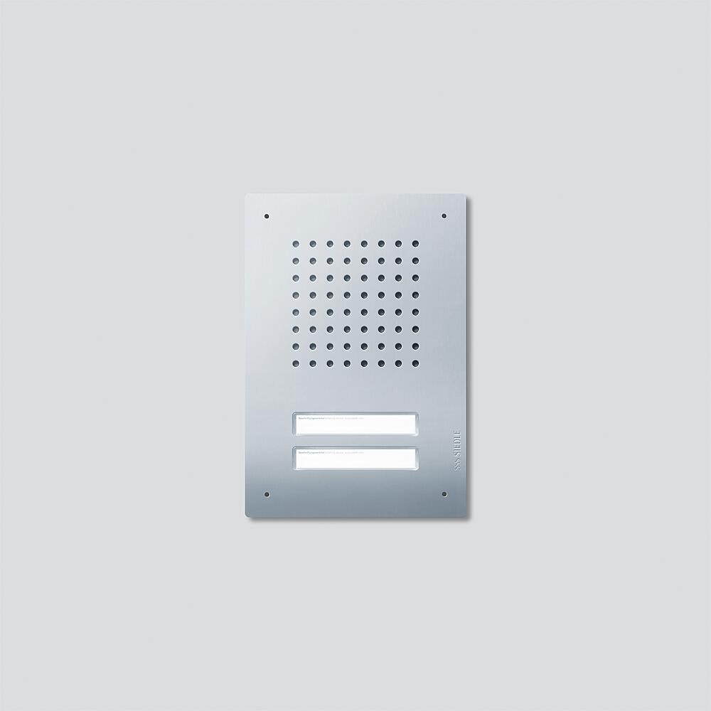 Classic-Türstation für den In-Home-Bus mit Edelstahl-Front, V4A gebürstet. Für die Unterputzmontage wird das Unterputzgehäuse GU CL 02-0 benötigt. Komponenten: • Türlautsprecher CBTLE 050-… mit integriertem Lautsprecher und Mikrofon, Sprachlautstärke einstellbar • 2 Ruftasten mit hinterleuchtetem Namensschild, frontseitig auswechselbar, akustische Rückmeldung beim Betätigen einer Ruftaste aktivierbar
