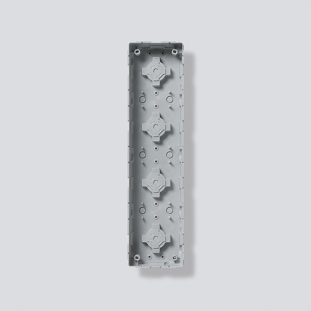 aus formstabilem Kunststoff, zur Befestigung der Montagerahmen MR 611-... über Schnellverschraubungen, mit vorgeprägten Kabeleinführungen, Aufnahmemöglichkeit für separates Zubehör Hohlwandbefestigung ZHB 612-... und Putzschutz, die Gehäuse sind neben- und übereinander anreihbar mit beiliegendem Zubehör
