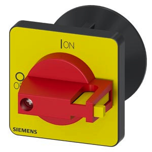 Knebel, rot/gelb 48x48 mm Frontbefestigung Zentrallochbefestigung 22,5 mm mit Kupplungsteil für Welle 6x6 mm, Zubehör für Lasttrennschalter 3LD3 Haupt- und NOT-AUS-Schalter 3LD - Durchgängige Sicherheit für Anwender und Systeme.