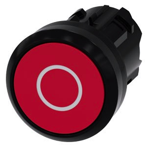 Drucktaster, 22 mm, rund, Kunststoff, rot, Beschriftung: O, Druckknopf, flach, tastend Drucktaster SIRIUS ACT zur Schaltung und Steuerung elektrischer Verbraucher. Unter dem Markennamen SIRIUS ACT bietet Siemens ein einzigartiges Portfolio an Befehls- und Meldegeräten mit weltweiten Produkt-Zulassungen in drei modernen Designreihen aus robustem Echtmetall und hochwertigem Kunststoff. Das innovative Aufschnappkonzept vereinfacht die Montage so weit, dass dafür nur eine Hand und kein Spezialwerkzeug erforderlich ist. Als Montagebohrungen genügen nutfreie Löcher, da bereits ein 100%iger Verdrehschutz integriert ist. Dank der durchgängig hohen Schutzart sind die robusten Geräte industrietauglich und für den Außeneinsatz geeignet. Sogar die Reinigung mit Hochdruckstrahl ist möglich. Weder Staub, Öle noch aggressive Laugen können den zuverlässigen Betrieb stören. Neben der Standardverdrahtung können die meisten Geräte auch über PROFINET, AS-Interface oder IO-Link an die Steuerung angebunden werden. Damit reduzieren Sie Ihren Verdrahtungsaufwand, minimieren Fehlerquellen und gewinnen mehr Flexibilität. Komfortabel unterstützt der grafische Online-Konfigurator bei Auswahl und Bestellung von Einzelgeräten, Gehäusen und Beschriftungen. Umfangreiche Dokumentation (z.B. Handbuch, 3D-Daten, Anschlussdiagramm) ist verfügbar. Lieferbare Ausführungen: mehrere Farben, beleuchtet/unbeleuchtet, mit/ohne Beschriftung, verrastende/tastende Betätigung, verschiedene Druckknopf- und Frontringhöhen. Hinweis: Einzelgerät, Halter und Module bitte extra bestellen. SIRIUS ACT - Performance in Action beim Befehlen und Melden. Einfach montiert, einfach stark, einfach perfekt.