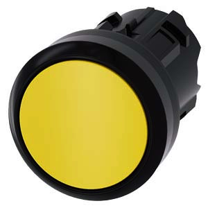 Drucktaster, 22 mm, rund, Kunststoff, gelb, Druckknopf, flach tastend Drucktaster SIRIUS ACT zur Schaltung und Steuerung elektrischer Verbraucher. Unter dem Markennamen SIRIUS ACT bietet Siemens ein einzigartiges Portfolio an Befehls- und Meldegeräten mit weltweiten Produkt-Zulassungen in drei modernen Designreihen aus robustem Echtmetall und hochwertigem Kunststoff. Das innovative Aufschnappkonzept vereinfacht die Montage so weit, dass dafür nur eine Hand und kein Spezialwerkzeug erforderlich ist. Als Montagebohrungen genügen nutfreie Löcher, da bereits ein 100%iger Verdrehschutz integriert ist. Dank der durchgängig hohen Schutzart sind die robusten Geräte industrietauglich und für den Außeneinsatz geeignet. Sogar die Reinigung mit Hochdruckstrahl ist möglich. Weder Staub, Öle noch aggressive Laugen können den zuverlässigen Betrieb stören. Neben der Standardverdrahtung können die meisten Geräte auch über PROFINET, AS-Interface oder IO-Link an die Steuerung angebunden werden. Damit reduzieren Sie Ihren Verdrahtungsaufwand, minimieren Fehlerquellen und gewinnen mehr Flexibilität. Komfortabel unterstützt der grafische Online-Konfigurator bei Auswahl und Bestellung von Einzelgeräten, Gehäusen und Beschriftungen. Umfangreiche Dokumentation (z.B. Handbuch, 3D-Daten, Anschlussdiagramm) ist verfügbar. Lieferbare Ausführungen: mehrere Farben, beleuchtet/unbeleuchtet, mit/ohne Beschriftung, verrastende/tastende Betätigung, verschiedene Druckknopf- und Frontringhöhen. Hinweis: Einzelgerät, Halter und Module bitte extra bestellen. SIRIUS ACT - Performance in Action beim Befehlen und Melden. Einfach montiert, einfach stark, einfach perfekt.