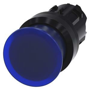 Leuchtpilzdrucktaster, 22 mm, rund, Kunststoff, blau, 30 mm, tastend Pilzdrucktaster SIRIUS ACT mit großer Handhabe zur komfortablen Betätigung mit der ganzen Hand. Unter dem Markennamen SIRIUS ACT bietet Siemens ein einzigartiges Portfolio an Befehls- und Meldegeräten mit weltweiten Produkt-Zulassungen in drei modernen Designreihen aus robustem Echtmetall und hochwertigem Kunststoff. Das innovative Aufschnappkonzept vereinfacht die Montage so weit, dass dafür nur eine Hand und kein Spezialwerkzeug erforderlich ist. Als Montagebohrungen genügen nutfreie Löcher, da bereits ein 100%iger Verdrehschutz integriert ist. Dank der durchgängig hohen Schutzart sind die robusten Geräte industrietauglich und für den Außeneinsatz geeignet. Sogar die Reinigung mit Hochdruckstrahl ist möglich. Weder Staub, Öle noch aggressive Laugen können den zuverlässigen Betrieb stören. Neben der Standardverdrahtung können die meisten Geräte auch über PROFINET, AS-Interface oder IO-Link an die Steuerung angebunden werden. Damit reduzieren Sie Ihren Verdrahtungsaufwand, minimieren Fehlerquellen und gewinnen mehr Flexibilität. Komfortabel unterstützt der grafische Online-Konfigurator bei Auswahl und Bestellung von Einzelgeräten, Gehäusen und Beschriftungen. Umfangreiche Dokumentation (z.B. Handbuch, 3D-Daten, Anschlussdiagramm) ist verfügbar. Lieferbare Ausführungen: 30/40/60 mm Pilz-Durchmesser, mehrere Farben, beleuchtet/unbeleuchtet, verrastende/tastende Betätigung, Zug-/Drehentriegelung. Hinweis: Einzelgerät, Halter und Module bitte extra bestellen. SIRIUS ACT - Performance in Action beim Befehlen und Melden. Einfach montiert, einfach stark, einfach perfekt.