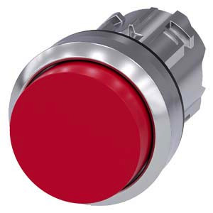 Drucktaster, 22 mm, rund, Metall, hochglanz, rot, Druckknopf, hoch tastend Drucktaster SIRIUS ACT zur Schaltung und Steuerung elektrischer Verbraucher. Unter dem Markennamen SIRIUS ACT bietet Siemens ein einzigartiges Portfolio an Befehls- und Meldegeräten mit weltweiten Produkt-Zulassungen in drei modernen Designreihen aus robustem Echtmetall und hochwertigem Kunststoff. Das innovative Aufschnappkonzept vereinfacht die Montage so weit, dass dafür nur eine Hand und kein Spezialwerkzeug erforderlich ist. Als Montagebohrungen genügen nutfreie Löcher, da bereits ein 100%iger Verdrehschutz integriert ist. Dank der durchgängig hohen Schutzart sind die robusten Geräte industrietauglich und für den Außeneinsatz geeignet. Sogar die Reinigung mit Hochdruckstrahl ist möglich. Weder Staub, Öle noch aggressive Laugen können den zuverlässigen Betrieb stören. Neben der Standardverdrahtung können die meisten Geräte auch über PROFINET, AS-Interface oder IO-Link an die Steuerung angebunden werden. Damit reduzieren Sie Ihren Verdrahtungsaufwand, minimieren Fehlerquellen und gewinnen mehr Flexibilität. Komfortabel unterstützt der grafische Online-Konfigurator bei Auswahl und Bestellung von Einzelgeräten, Gehäusen und Beschriftungen. Umfangreiche Dokumentation (z.B. Handbuch, 3D-Daten, Anschlussdiagramm) ist verfügbar. Lieferbare Ausführungen: mehrere Farben, beleuchtet/unbeleuchtet, mit/ohne Beschriftung, verrastende/tastende Betätigung, verschiedene Druckknopf- und Frontringhöhen. Hinweis: Einzelgerät, Halter und Module bitte extra bestellen. SIRIUS ACT - Performance in Action beim Befehlen und Melden. Einfach montiert, einfach stark, einfach perfekt.