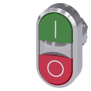 beleuchteter Doppeldrucktaster, 22 mm, rund, Metall, hochglanz, grün: I, rot: O, Druckknöpfe, flach Doppeldrucktaster SIRIUS ACT zur Realisierung von zwei tastenden Schaltfunktionen in einer Befehlsstelle. Unter dem Markennamen SIRIUS ACT bietet Siemens ein einzigartiges Portfolio an Befehls- und Meldegeräten mit weltweiten Produkt-Zulassungen in drei modernen Designreihen aus robustem Echtmetall und hochwertigem Kunststoff. Das innovative Aufschnappkonzept vereinfacht die Montage so weit, dass dafür nur eine Hand und kein Spezialwerkzeug erforderlich ist. Als Montagebohrungen genügen nutfreie Löcher, dabereits ein 100%iger Verdrehschutz integriert ist. Dank der durchgängig hohen Schutzart sind die robusten Geräte industrietauglich und für den Außeneinsatz geeignet. Sogar die Reinigung mit Hochdruckstrahl ist möglich. Weder Staub, Öle noch aggressive Laugen können den zuverlässigen Betrieb stören. Neben der Standardverdrahtung können die meisten Geräte auch über PROFINET, AS-Interface oder IO-Link an die Steuerung angebunden werden. Damit reduzieren Sie Ihren Verdrahtungsaufwand, minimieren Fehlerquellen und gewinnen mehr Flexibilität. Komfortabel unterstützt der grafische Online-Konfigurator bei Auswahl und Bestellung von Einzelgeräten, Gehäusen und Beschriftungen. Umfangreiche Dokumentation (z.B. Handbuch, 3D-Daten, Anschlussdiagramm) ist verfügbar. Lieferbare Ausführungen: verschiedene Farbkombinationen, beleuchtet/unbeleuchtet, mit/ohne Beschriftung, verschiedene Druckknopfhöhen. Hinweis: Einzelgerät, Halter und Module bitte extra bestellen. SIRIUS ACT - Performance in Action beim Befehlen und Melden. Einfach montiert, einfach stark, einfach perfekt.