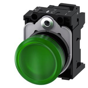 Leuchtmelder, 22 mm, rund, Kunststoff, grün, Linse, glatt, mit Halter, LED-Modul, mit integrierter LED AC 230 V, Federzuganschluss Leuchtmelder SIRIUS ACT zur Signalisierung von Schaltzuständen oder Störungen in Anlagen mit brillianter Leuchtkraft dank energieeffizienter LED-Technologie. Unter dem Markennamen SIRIUS ACT bietet Siemens ein einzigartiges Portfolio an Befehls- und Meldegeräten mit weltweiten Produkt-Zulassungen in drei modernen Designreihen aus robustem Echtmetall und hochwertigem Kunststoff. Das innovative Aufschnappkonzept vereinfacht die Montage so weit, dass dafür nur eine Hand und kein Spezialwerkzeug erforderlich ist. Als Montagebohrungen genügen nutfreie Löcher, da bereits ein 100%iger Verdrehschutz integriert ist. Dank der durchgängig hohen Schutzart sind die robusten Geräte industrietauglich und für den Außeneinsatz geeignet. Sogar die Reinigung mit Hochdruckstrahl ist möglich. Weder Staub, Öle noch aggressive Laugen können den zuverlässigen Betrieb stören. Neben der Standardverdrahtung können die meisten Geräte auch über PROFINET, AS-Interface oder IO-Link an die Steuerung angebunden werden. Damit reduzieren Sie Ihren Verdrahtungsaufwand, minimieren Fehlerquellen und gewinnen mehr Flexibilität. Komfortabel unterstützt der grafische Online-Konfigurator bei Auswahl und Bestellung von Einzelgeräten, Gehäusen und Beschriftungen. Umfangreiche Dokumentation (z.B. Handbuch, 3D-Daten, Anschlussdiagramm) ist verfügbar. Lieferbare Ausführungen: mehrere Farben, verschiedene Spannungsvarianten. Hinweis: Komplettgerät, Lieferung inklusive Halter und Module. SIRIUS ACT - Performance in Action beim Befehlen und Melden. Einfach montiert, einfach stark, einfach perfekt.