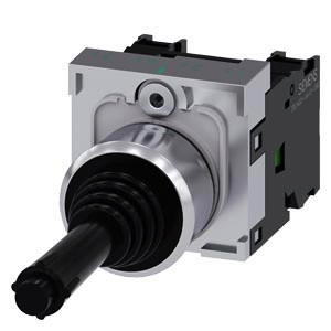 Koordinatenschalter, 22 mm, rund, Metall hochglanz, schwarz, 2 Schaltstellungen, waagerecht verrastend, mit mechanischer Verriegelung, in der O-Stellung, mit Halter, 1S, 1S, Schraubanschluss, Koordinatenschalter SIRIUS ACT für einfache Navigationsaufgaben. Unter dem Markennamen SIRIUS ACT bietet Siemens ein einzigartiges Portfolio an Befehls- und Meldegeräten mit weltweiten Produkt-Zulassungen in drei modernen Designreihen aus robustem Echtmetall und hochwertigem Kunststoff. Das innovative Aufschnappkonzept vereinfacht die Montage so weit, dass dafür nur eine Hand und kein Spezialwerkzeug erforderlich ist. Als Montagebohrungen genügen nutfreie Löcher, da bereits ein 100%iger Verdrehschutz integriert ist. Dank der durchgängig hohen Schutzart sind die robusten Geräte industrietauglich und für den Außeneinsatz geeignet. Sogar die Reinigung mit Hochdruckstrahl ist möglich. Weder Staub, Öle noch aggressive Laugen können den zuverlässigen Betrieb stören. Neben der Standardverdrahtung können die meisten Geräte auch über PROFINET, AS-Interface oder IO-Link an die Steuerung angebunden werden. Damit reduzieren Sie Ihren Verdrahtungsaufwand, minimieren Fehlerquellen und gewinnen mehr Flexibilität. Komfortabel unterstützt der grafische Online-Konfigurator bei Auswahl und Bestellung von Einzelgeräten, Gehäusen und Beschriftungen. Umfangreiche Dokumentation (z.B. Handbuch, 3D-Daten, Anschlussdiagramm) ist verfügbar. Lieferbare Ausführungen: 2/4 Schaltpositionen, verrastende/tastende Betätigung. Hinweis: Komplettgerät, Lieferung inklusive Halter und Module. SIRIUS ACT - Performance in Action beim Befehlen und Melden. Einfach montiert, einfach stark, einfach perfekt.