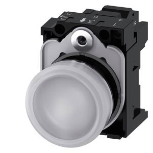 Leuchtmelder, 22 mm, rund, Metall, hochglanz, weiß, Linse, glatt, mit Halter, LED-Modul mit integrierter LED AC 230 V, Federzuganschluss Leuchtmelder SIRIUS ACT zur Signalisierung von Schaltzuständen oder Störungen in Anlagen mit brillianter Leuchtkraft dank energieeffizienter LED-Technologie. Unter dem Markennamen SIRIUS ACT bietet Siemens ein einzigartiges Portfolio an Befehls- und Meldegeräten mit weltweiten Produkt-Zulassungen in drei modernen Designreihen aus robustem Echtmetall und hochwertigem Kunststoff. Das innovative Aufschnappkonzept vereinfacht die Montage so weit, dass dafür nur eine Hand und kein Spezialwerkzeug erforderlich ist. Als Montagebohrungen genügen nutfreie Löcher, da bereits ein 100%iger Verdrehschutz integriert ist. Dank der durchgängig hohen Schutzart sind die robusten Geräte industrietauglich und für den Außeneinsatz geeignet. Sogar die Reinigung mit Hochdruckstrahl ist möglich. Weder Staub, Öle noch aggressive Laugen können den zuverlässigen Betrieb stören. Neben der Standardverdrahtung können die meisten Geräte auch über PROFINET, AS-Interface oder IO-Link an die Steuerung angebunden werden. Damit reduzieren Sie Ihren Verdrahtungsaufwand, minimieren Fehlerquellen und gewinnen mehr Flexibilität. Komfortabel unterstützt der grafische Online-Konfigurator bei Auswahl und Bestellung von Einzelgeräten, Gehäusen und Beschriftungen. Umfangreiche Dokumentation (z.B. Handbuch, 3D-Daten, Anschlussdiagramm) ist verfügbar. Lieferbare Ausführungen: mehrere Farben, verschiedene Spannungsvarianten. Hinweis: Komplettgerät, Lieferung inklusive Halter und Module. SIRIUS ACT - Performance in Action beim Befehlen und Melden. Einfach montiert, einfach stark, einfach perfekt.