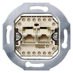 Geräteeinsätze für Daten- und Sprachnetze, UAE-Anschlussdose, Cat.3, Rutenbeck mit Schrägauslass für RJ 11/12 u. RJ 45, mit Schraubklemmen, ungeschirmt, ISDN-fähig, Unterputz Montage, Befestigung mit Kralle und Schraube, IP 20