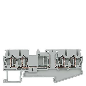 Klemme, Federzuganschluss, 4 Anschlussstellen, Trennklemme, 2,5mm², grau Reihenklemmen-Anschlusstechnik für viele Anwendungen in Industrie-, Zweck- und Wohnungsbau. Komfortable und einfache Montage. Dauerhaft sicherer Kontakt. Leicht lösbarer Anschluss elektrischer Verbindungen wie Kabel und Leitungen. Zuverlässige Sicherheit bei der Installation dank standardmäßigem Berührungsschutz. Egal ob Schraub-, Federzug-, Push-in- oder Schnellanschluss, alle sind frei untereinander kombinierbar. Das umfangreiche Beschriftungs- und Prüfzubehör ist standardisiert und übergreifend nutzbar.Optimale Technik für Ihre Sicherheit - nur von Siemens.