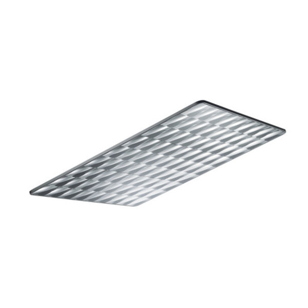 Spiegel-Werfer-Reflektor, für Siteco Mirrortec Indoor, Seilabhänger, Gehäuse, quadratisch, aus Aluminium, lackiert, weißaluminium (RAL 9006), Fresnel Reflektor 100, aus PMMA, Alu bedampft, hochglänzend, Lichtpunkt-Zerlegung, Fresnelstruktur, Länge: 600 mm, Breite: 600 mm