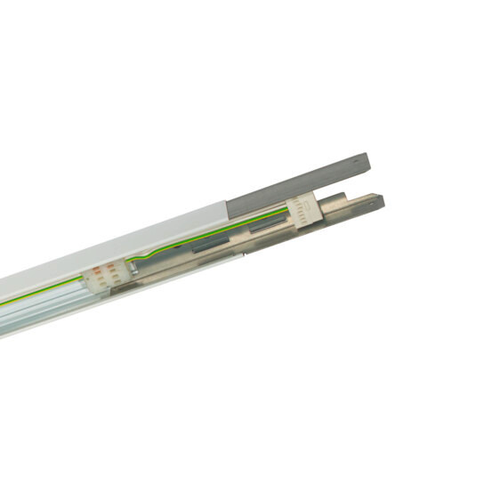 Modario IP64, Tragschiene, aus Stahlblech, verzinkt, lackiert, leuchtenweiß, 1längig, Länge: 1.495 mm, Breite: 58 mm, Höhe: 43mm, Durchverdrahtung: 5x 2,5mm², mit Klemme, 5polig, max. 2,5mm², Schutzart (gesamt): für Schutzart IP64, Schutzklasse (gesamt): SK I (Schutzerdung), Prüfzeichen: CE, ENEC, VDE, Norm: EN 60598