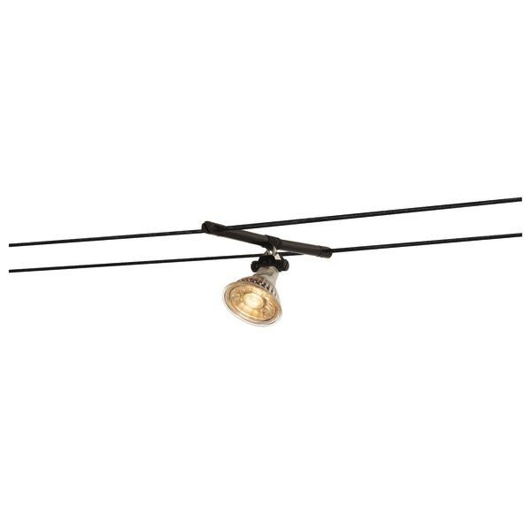 Schwenkbarer Strahler COSMIC für das Niedervolt Seil-System. Durch den verbauten GX5,3 Sockel ist der Strahler für Halogen- sowie LED-Leuchtmittel geeignet. Der kompatible Seilabstand beträgt 15,5 cm.