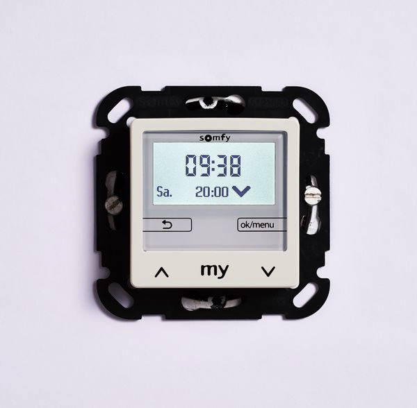 Chronis Smoove Uno S Pure White, ist ein 230 V Motorsteuergerät mit integrierter Zeitschaltuhr zum automatischen Öffnen und Schließen von Rollladen, Raffstores und mehr. Im Vergleich zu der Chronis Smoove Uno, bietet die S-Version insgesamt 4 Schaltzeiten pro Tag, das Öffnen entsprechend Sonnenaufgangszeiten (über Software oder über Sensor). Der bisherige verdrahtete Helligkeitssensor mit Saugknopf wird durch einen Funk Sonnensensor Sunis WireFree II io ersetzt. Optionale Verbindung mit dem Funksonnensensor Suni Wirefree io 1818285 für eine hochwertige Dämmerungs- und Sonnenautomati (nicht im Lieferumgang enthalten) Das große Display mit Hintergrundbeleuchtung ermöglicht eine einfache, menügeführte Bedienung und Programmierung mittels Klartextanzeige. Aufgrund des modernen Designs, des 50 x 50 mm Moduls kann der Chronis Smoove Uno beliebig in die Schalterprogramme führender Hersteller integriert werden. Tages- und Wochenprogramm. Individuelle Öffnungs- und Schließzeiten für jeden Wochentag oder für die gesamte Woche (Montag-Sonntag) programmierbar. Vier Schaltzeiten pro Tag (frei definierbar). Cosmic Programm abends (Schließen entsprechend Sonnenuntergangszeiten). Raffstore-Mode einstellbar für eine exakte Lamellenwendung. Automatische Sommer-/Winterzeitumstellung. Mit Security-Urlaubsschaltung (verändert automatisch Öffnungs- und Schließzeiten im Bereich +/- 15 Minuten. Neue Skip next Funktion: Nächster programmierter Fahrbefehl kann auf Knopfdruck unterdrückt werden. Einfaches Kopieren der Einstellungen über das neue Einstelltool QuickCopy , Lieferung ohne Rahmen