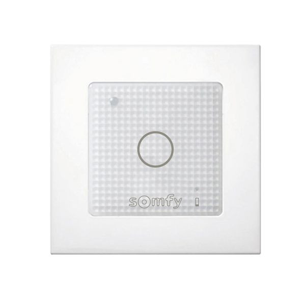 Der Funkwandsender mit sensitiven Berührungstasten dient zur Ansteuerung von io-Lichtern und io-Zwischensteckern und ermöglicht die Bedienung eines einzelnen Produkts oder einer gesamten Produktgruppe. Er wird mit einer Befestigungsplatte geliefert, die eine einfache und flexible Wandmontage ohne Unterputzdose ermöglicht. Der Sender ist mit einem 50 x 50 mm Adapterrahmen kompatibel, der für alle Schalterprogramme der jeweiligen Hersteller geeignet ist. Eine LED zeigt den Sendevorgang an. Der Sender ist drahtlos und batteriebetrieben. Im Lieferumfang sind das Funkmodul inklusive Batterie, eine Befestigungsplatte für den Somfy Smoove Rahmen sowie der Somfy Smoove Rahmen Pure enthalten. Die Betriebsspannung beträgt 3 V (Batterietyp CR2430), der Sender funktioniert bei Betriebstemperaturen von 0 bis 55 Grad Celsius. Die Funkfrequenz für das io-Modul liegt bei 868,95 MHz, und das Gerät ist für den Einsatz in trockenen Wohnräumen geeignet mit der Schutzart IP30. Die Abmessungen betragen 80 x 80 x 10 mm.
