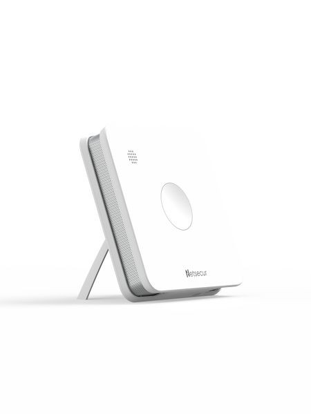 Der Open?R Luftqualitätssensor gibt Auskunft über die Luftqualität in Innenräumen, indem er Temperatur (°C), Luftfeuchtigkeit (%) und CO² (ppm) ständig überwacht. Die Benachrichtigung erfolgt sowohl visuell über LED als auch akustisch. Dank des Funkprotokolls Zigbee 3.0 kann er direkt ins TaHoma Ökosystem eingebunden werden.