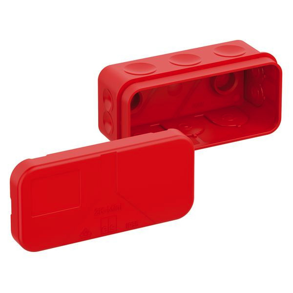 Abzweigdose, mit Schutzart IP55, Nennquerschnitt 2,5mm², Ui=400 V AC, zertifiziert durch VDE (DIN EN 60670-1/-22 (VDE 0606-1/-22)), selbstdichtende, weiche Einführungsmembranen, Dichtbereich 2-14mm, (1 rückseitig, 10 seitlich), innenliegende Befestigungsstellen, für Standardinstallationen im Innenbereich, rot, ohne Klemmen, zur Kennzeichnung von Stromkreisen der Sicherheitsbeleuchtung