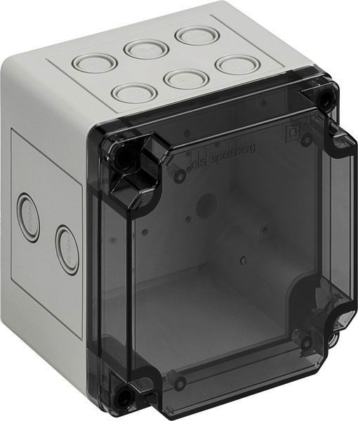 Leergehäuse, für individuellen Ausbau mit Normschienen oder Montageplatten, IP65, Schutzisoliert, Kasten + Deckel Polycarbonat, Kasten grau ähnl. RAL 7035, Deckel transparent