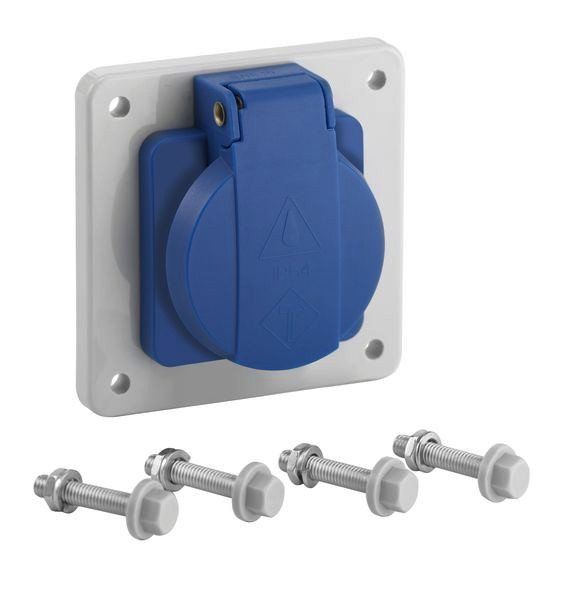 Anbausteckdose 16A, 230V zur seitlichen Montage an Gehäusen AK/AK-F 14/28/42/56/70 sowie Plus-Typen, Schuko(R), Schutzart IP54