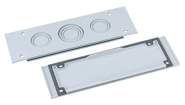 Anbauflansch, zum Anbau an 300mm breite Stirnseiten von AKL / AKi-L Leergehäusen, AKi Schalter- und Sicherungsgehäusen, AKi Steckdosenverteiler, AKi-Z / ZVi Zählergehäusen, komplett mit Befestigungsmaterial, mit Vorprägung, 2 x M32 / M40 / M50, 1 x M40 / M50 / M63