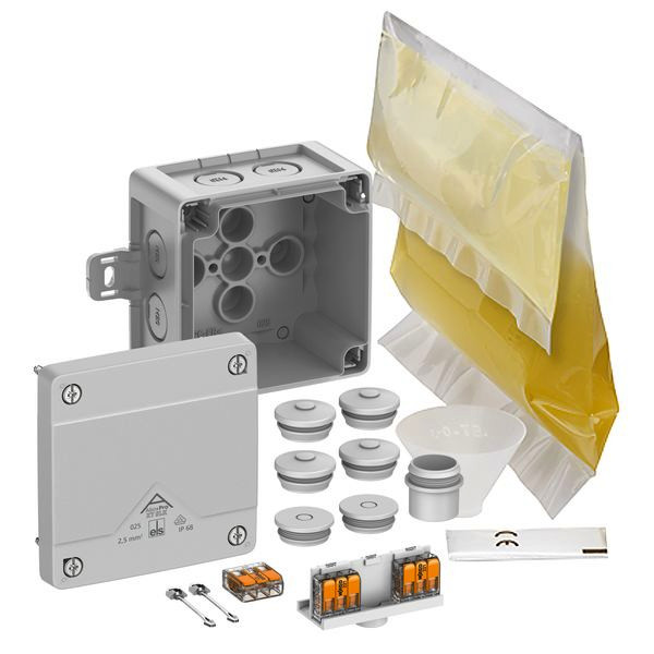 | Kurzbeschreibung | Junction box, Type of protection IP68, max. 2,5², Impact strength IK09, Protection class II, Ui 450V AC, Ui 450V DC, VDE, Halogen free |