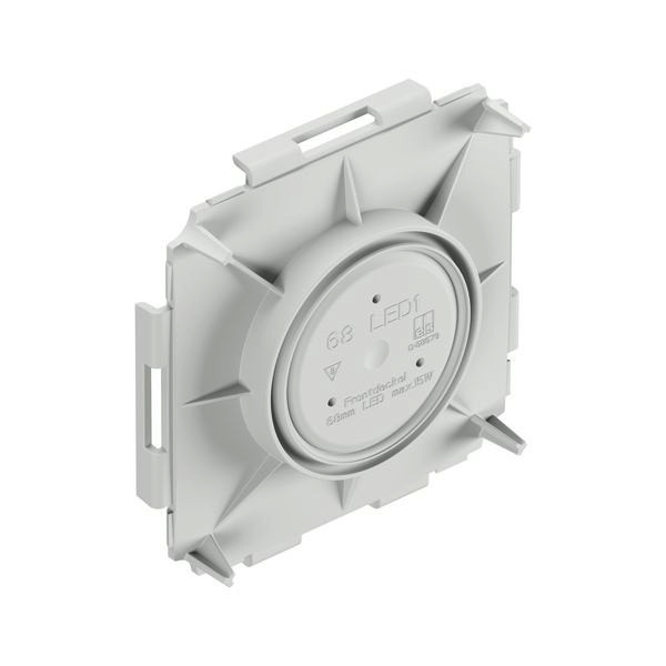 Frontteil, zur Verwendung in Kombination mit IBTLED 1-O Einbaugehäuse im Ortbeton, mit Schutzart IP30, Bemessungsisolationsspannung: 400V AC, halogenfrei, Innendurchmesser 68mm, Durchmesser äußerer Blendenrand mind. 74mm, Klebebefestigung oder Nagelbefestigung