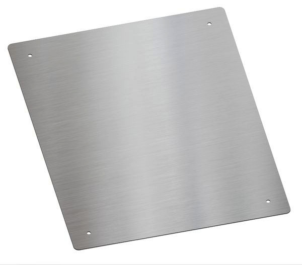 Designplatte aus Edelstahl V2A, 1 Stück, für die rückseitige Abdeckung der Gehäuse GEOS 4050 bei Nutzung des Mastschellen-Sets GEOS MSS
