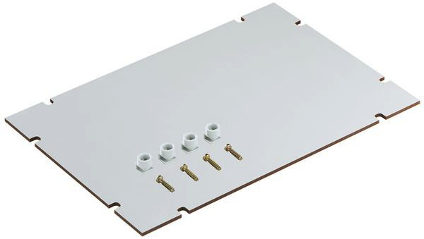 Montageplatte aus melamin-kaschiertem Isolierstoff, Stärke 5mm, mit Befestigungsset, grau,