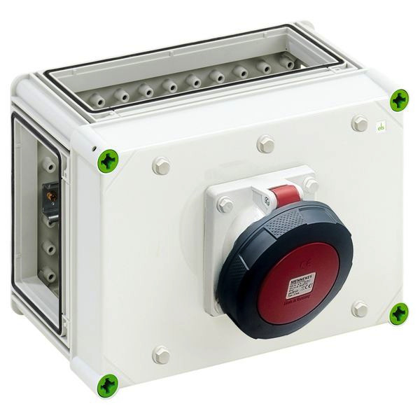 | Kurzbeschreibung | Steckdosengehäuse, Schutzart IP44, Schlagfestigkeit IK08, Schutzklasse II, Bemessungsspannung 400V AC, halogenfrei |