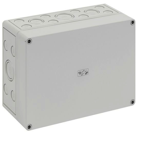 Kasten und Deckel: glasfaserverstärktes Polycarbonat, grau ähnlich RAL 7035