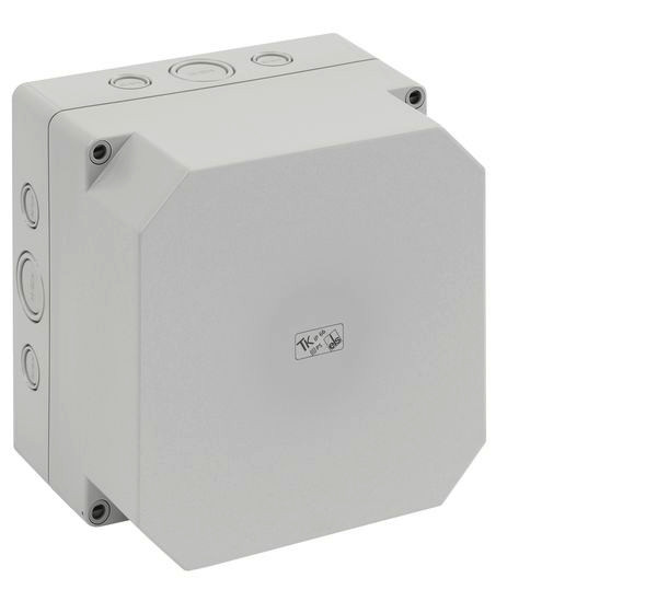 m = metrisch, o = ohne Vorprägung Leergehäuse, mit Schutzart IP66, Polystyrol, Ui=690V AC, Ui=1000V DC, innenliegende Befestigungsstellen, für Standardinstallationen im Innenbereich, Kasten: Polystyrol, grau, Deckel: Polystyrol, grau, Ausschlagmembranen, M16/M20/M25/M32, (12 seitlich)