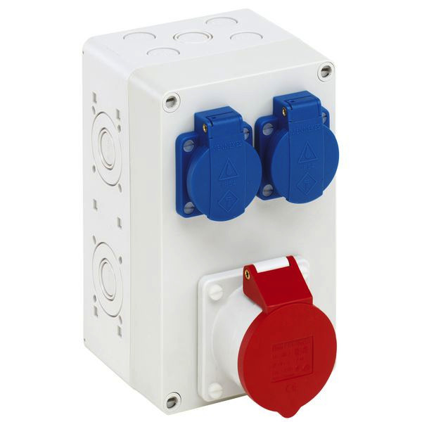 Steckdosengehäuse, mit Schutzart IP44, mit eingebauten, vorverdrahteten Steckdosen, hohe mechanische Belastbarkeit, temperaturunempfindlich, kombinierbar, halogenfrei