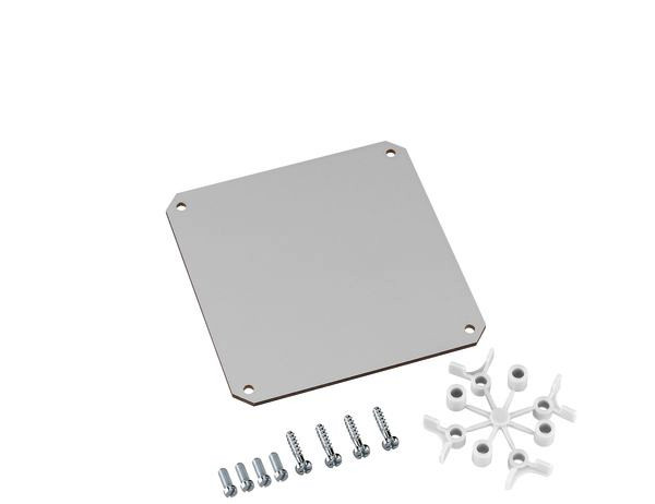 Montageplatte aus melamin-kaschiertem Isolierstoff, Stärke 2,5mm, inkl. Befestigungsschrauben und Distanzhaltern, grau, TK PS / TK PC 1313