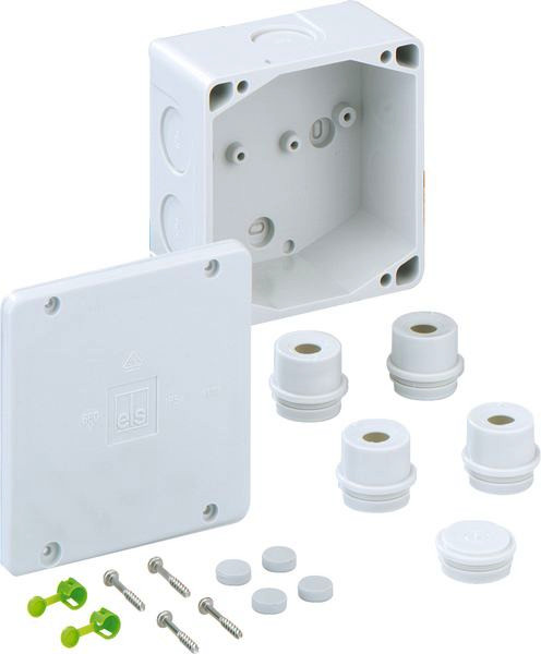 nach DIN EN 60670 (VDE 0606), Duroplast, formbeständig, halogenfrei, Ui = 690 V, 4 Anbaustutzen und 1 Verschlussstopfen, hohe Beständigkeit gegen Chemikalien, besonders gegen Öle und Fette