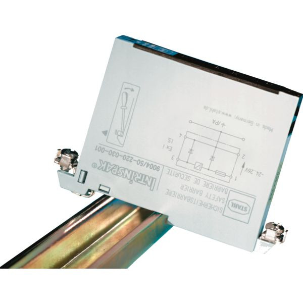 Ein-Kanal-Sicherheitsbarrieren mit elektron. Strombegrenzung, positiv m. Spannungsbegrenzung, 23- 27V, U?=20,60 V, I?=85 mA, P?=1751 mW, IIB: C?=0,850 µF, L?=0,370 mH, Zone 2