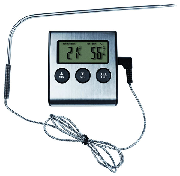 Alarmfunktion bei Erreichen der eingestellten Temperatur, Timer bis 99 Min., Temperaturmessung bis 250° C, 1 m langes hitzebeständiges Kabel, batteriebetrieben (nicht enthalten)