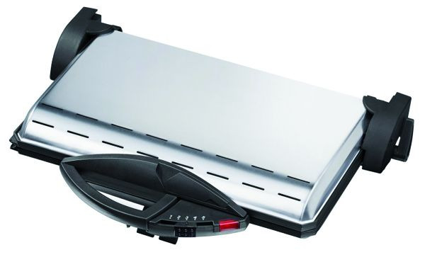 3-in-1: Kontaktgrillen, Überbacken und BBQ-Grillen (aufgeklappt):wendbare, antihaftbeschichtete Druckgussplatten, Grillmuster-Seite ideal für Steaks, glatte Seite für Würste, Meeresfrüchte, uvm., selbstjustierendes 3D-Scharnier, stufenlose Temperaturregelung, Kontrollleuchte, Made in Germany