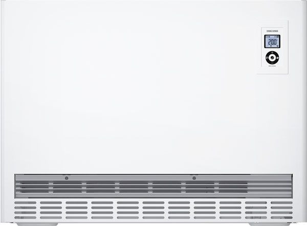Anwendung • Der Wärmespeicher benötigt dank seiner kompakten Bauart nur wenig Platz und ist für die Installation auf dem Boden vorgesehen. • Das Gerät eignet sich als Vollheizung für Wohnungen oder gewerbliche Räume und wird bei Niedertarif-Modellen mit Sperrzeiten genutzt. Komfortmerkmale • Der integrierte elektronische Aufladeregler mit C-Plus-Technologie lädt das Gerät vollautomatisch und bedarfsabhängig ganz ohne zusätzliche Steuergeräte auf. • Am Display lässt sich die gewünschte Raumtemperatur einfach einstellen. • Neben dem programmierbaren Wochen-Timer stehen zwei voreingestellte und ein individuell programmierbares Zeitprogramm zur Verfügung. • Die Komforttemperatur wird im Timer-Betrieb dank der adaptiven Regelung mit Lernfunktion zeitgenau erreicht. • Anwender können auf Wunsch am Gerät eine Funktion aktivieren, die offene Fenster erkennt, was unnötige Energieverluste vermeidet. • Zusätzlich zur Komforttemperatur ist auch die Absenktemperatur programmierbar. • Die Anschlussleistung lässt sich in vier Stufen reduzieren. • Der Steuereingang ist werkseitig für AC-Signale geeignet, optional ist der Steuereingang für DC-Signale als Zubehör erhältlich. • Eine Zusatzheizung kann optional integriert werden. • Integrierte Kindersicherung, da das Bedienteil gesperrt werden kann. • Hohes Wärmerückhaltevermögen. • Der Wärmespeicher ist serienmäßig mit einem Flusensieb ausgestattet. • Leiser Betrieb dank der geräuscharmen Tangentiallüfter. Installation • Das Gerät wird direkt auf dem Fußboden oder bodenfrei auf passenden Boden-Konsolen installiert. • Nur eine Kernsteinsorte. • Einfacher Elektroanschluss auch in Nischen dank des ausklappbaren und leicht zugänglichen Anschlusspanels. • Anschluss direkt mit NYM-Leitung. • Eine permanente Steuerspannung ist erforderlich. Sicherheit • Integrierter Schutz-Temperaturbegrenzer