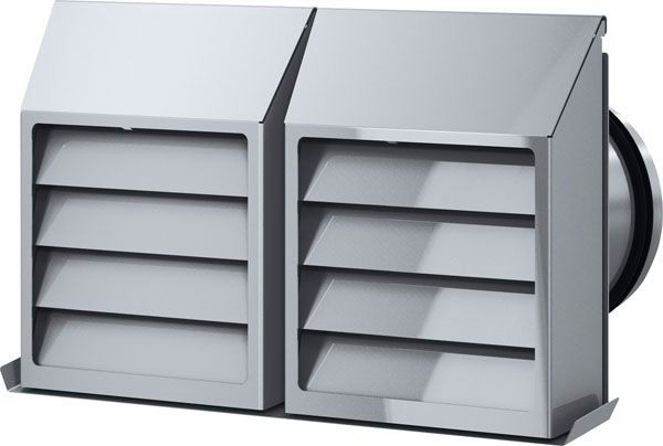 Beschreibung • Das kombinierte Ansaug-/Ausblasgitter für die Außen- und Fortluft-Führung zentraler Lüftungsgeräte mit Wärmerückgewinnung wird an der Außenwand montiert. Die Anschlüsse für Fortluft und Außenluft sind nebeneinander angeordnet. • Das Gitter besteht aus pulverbeschichtetem, verzinktem Stahlblech.