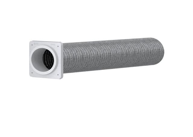 Beschreibung • Der wärmegedämmte, flexible Luftschlauch für die Außen- und Fortluft-Führung ist einseitig mit einem vormontierten Schnelladapter für den Anschluss an das AWG-B und ein Integralsystem ausgestattet. • Die Außenhülle besteht aus Aluminiumlaminat, die Innenhülle aus einem Polypropylen-Tuch. Dazwischen befindet sich eine schalldämmende thermische Isolierschicht aus Mineralwolle. • Die Schlauchenden lassen sich zur Befestigung oval verformen. • Der Schnelladapter aus EPS ist fertig montiert und abgedichtet.