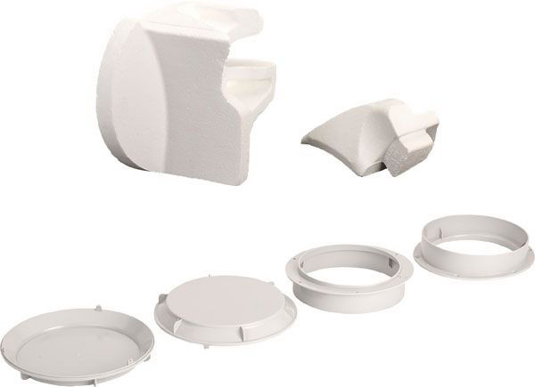 Beschreibung • Mit dem Luftumlenk-Set kann der werkseitig horizontal geführte Luftstrom einer Warmwasser-Wärmepumpe vertikal umgelenkt werden. Dadurch erhöht sich die Flexibilität bei der Installation im Aufstellraum, weil je nach Anforderung zwischen einer vertikalen oder horizontalen Luftführung gewählt werden kann.