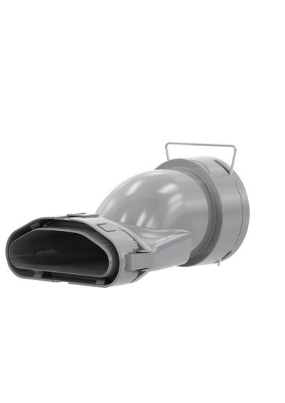 Beschreibung • Übergangsstück aus Kunststoff für den Anschluss von DN 75/90 LVS Rohr an das flache und flexible LVE - onfloor-Luftverteil-System.