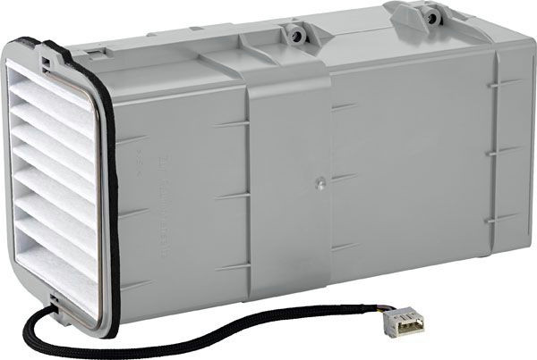 LWE 40 Lüftereinschub mit einem Gehäuse aus Kunststoff, energieeffizientem EC-Motor, Aluminiumwärmeübertrager bestehend aus vier Segmenten, Außenfilter G2 und Innenfilter G4. Drehrichtungsumkehr des Volumenstroms nach 40 Sekunden.