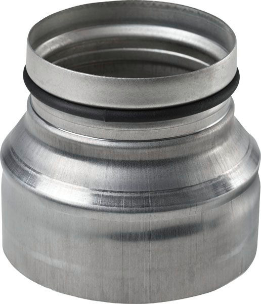 Beschreibung • Das Reduzierstück für Wickelfalzrohre des LWF-Luftverteilsystems besteht aus verzinktem Stahlblech. • Die reduzierte Seite ist als Steckverbinder mit Lippendichtung ausgebildet, die andere Seite als Muffen-Ende.